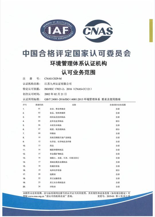 環(huán)境管理體系認(rèn)可業(yè)務(wù)范圍-中文2