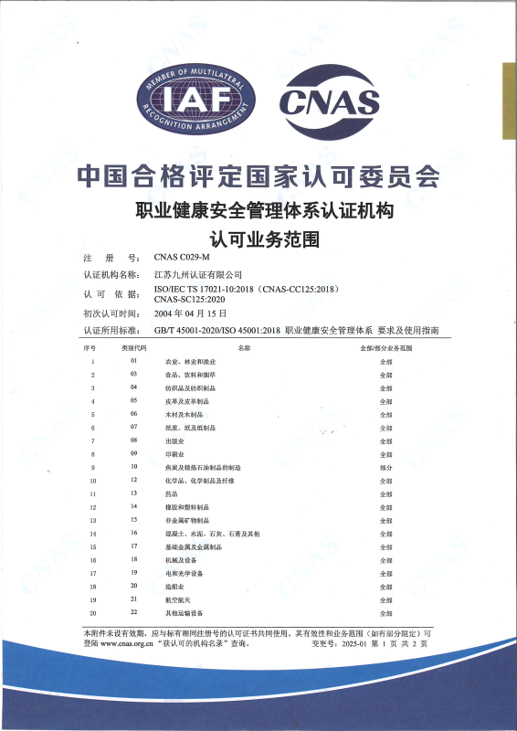 職業(yè)健康安全管理體系認(rèn)可業(yè)務(wù)范圍-中文1